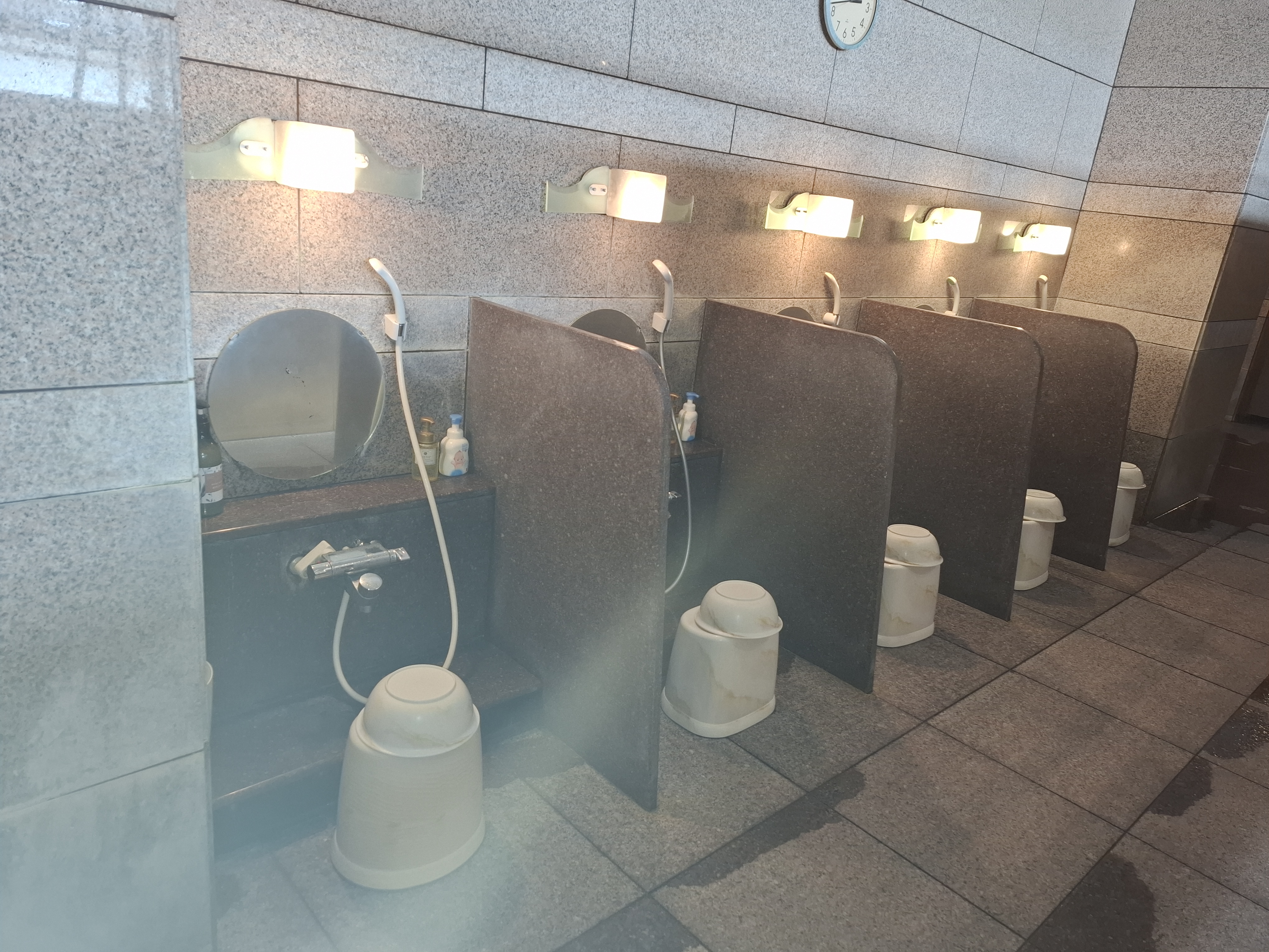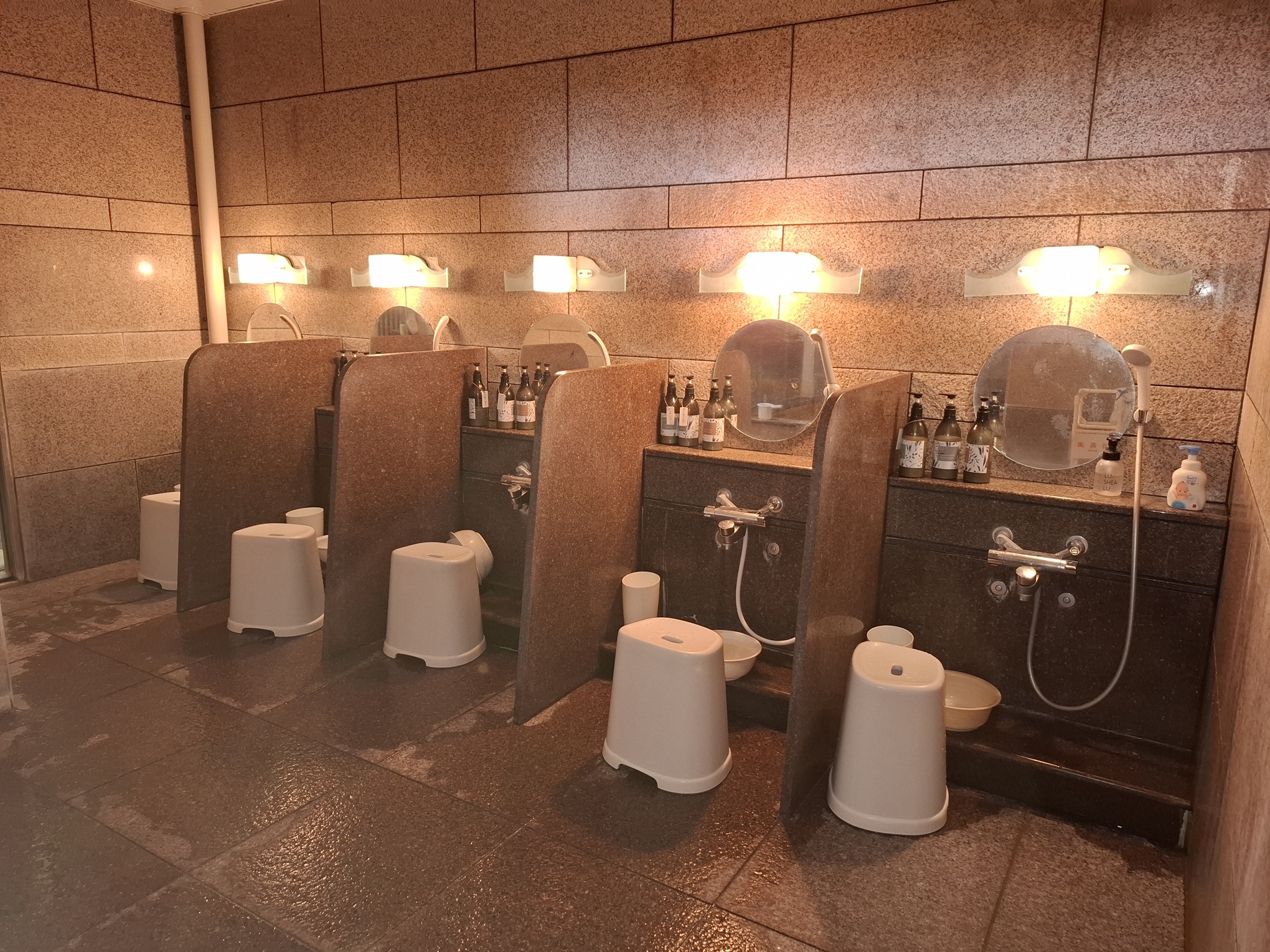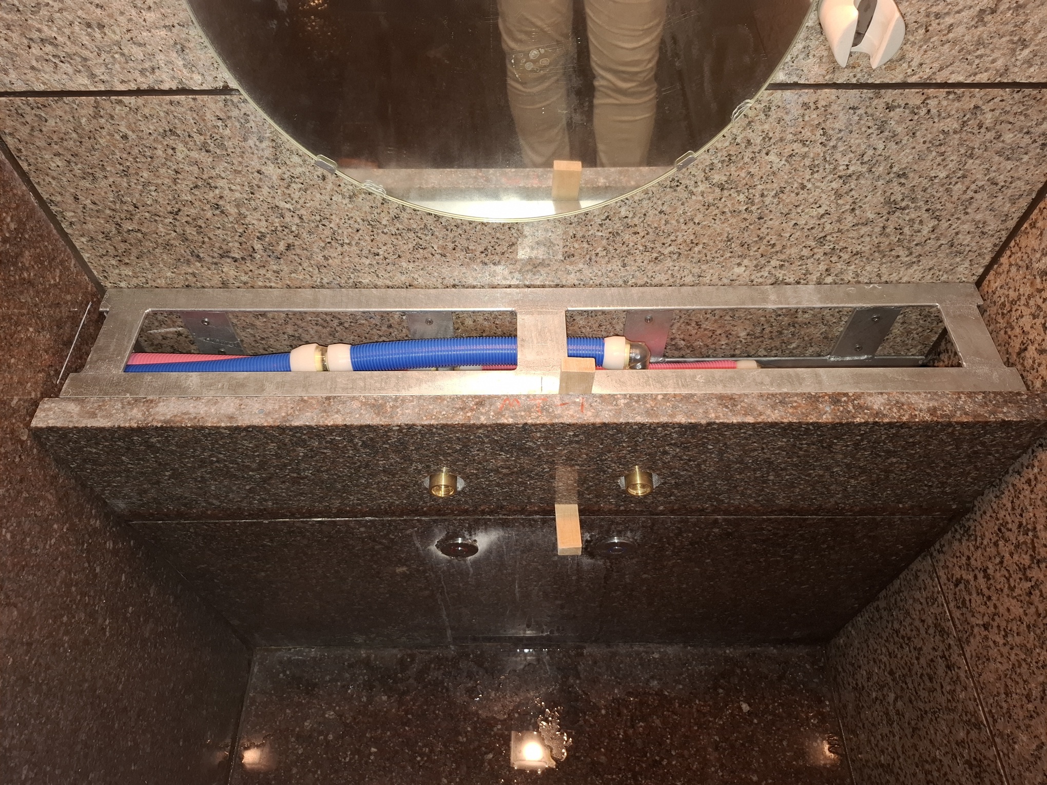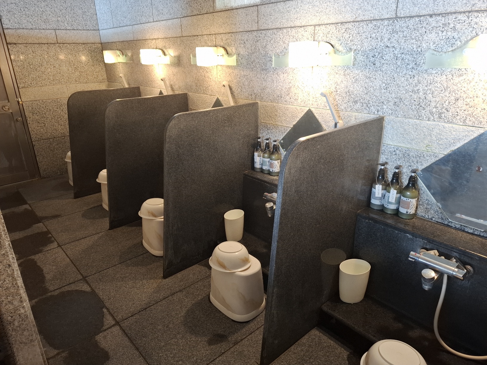 洗場の配管交換に伴うライニング嵩上げ石張り工事