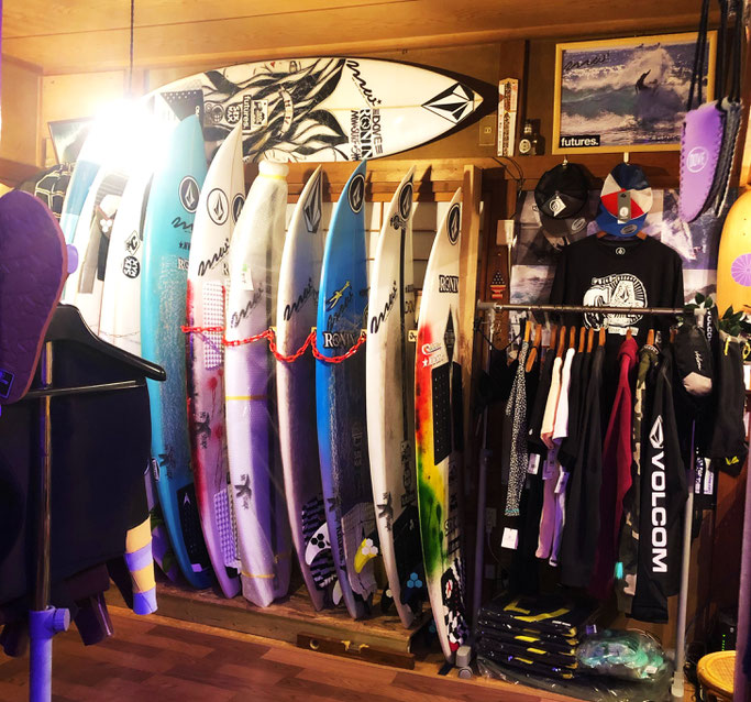 小さなショップながら、アットホームな雰囲気で毎日笑顔があふれるMWSURFSHOP。サーフィンを始めたばかりの方も、気軽に立ち寄れる心地よいお店です。