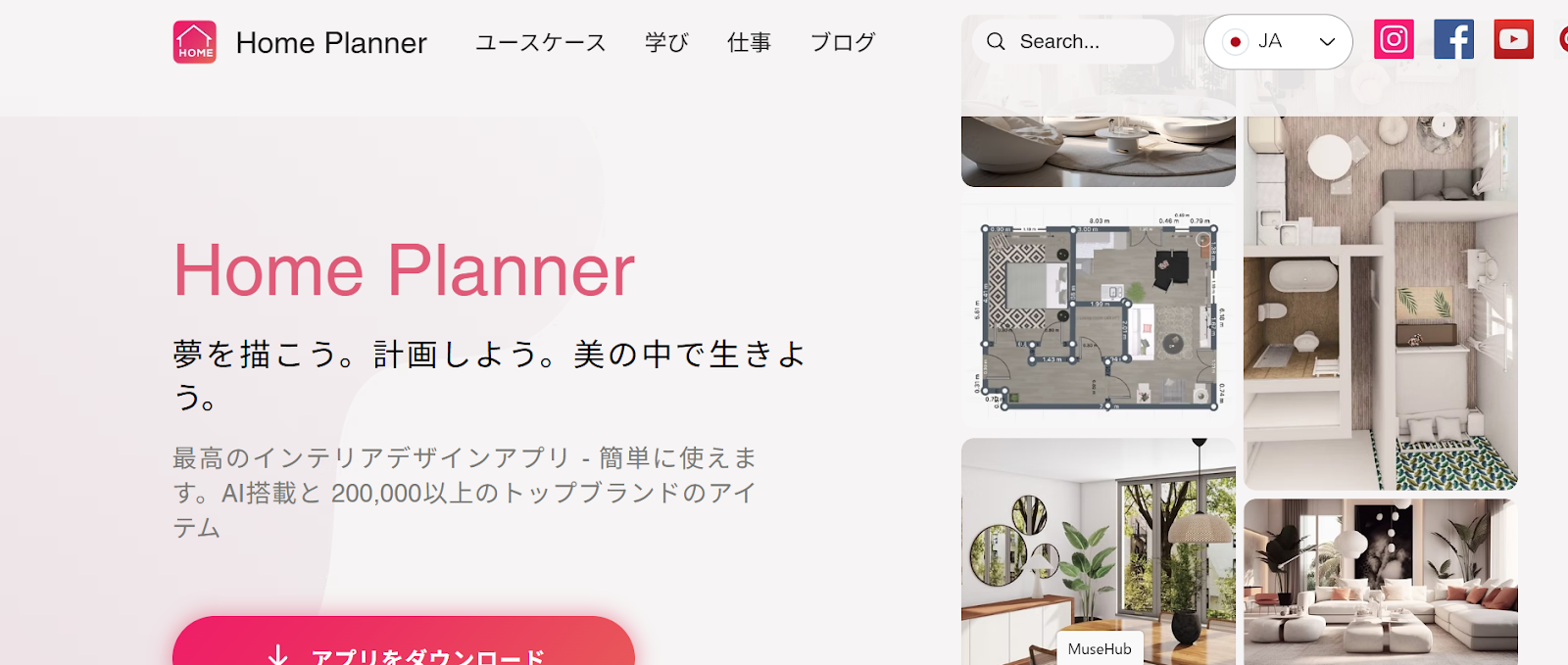 ホームプランナーは、家具を実寸で配置できる間取りシミュレーションアプリです。ソファや収納、照明などをリアルサイズで確認できるため、家具配置の具体的なイメージをつかみやすいでしょう。