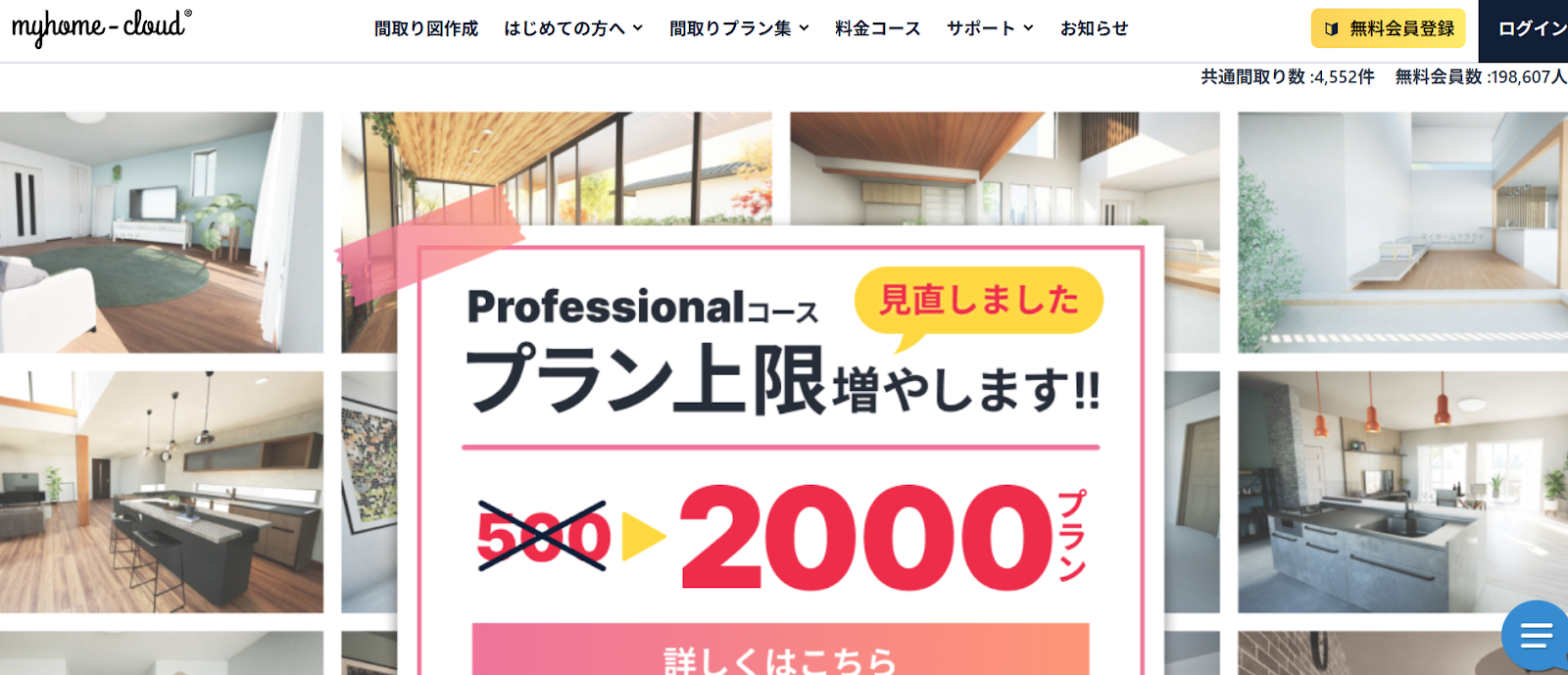 海外仕様のアイテムが中心なので、輸入住宅や海外テイストの家を建てたい方に向いています。一部機能は有料ですが、基本的な間取り作成は無料で行えます。