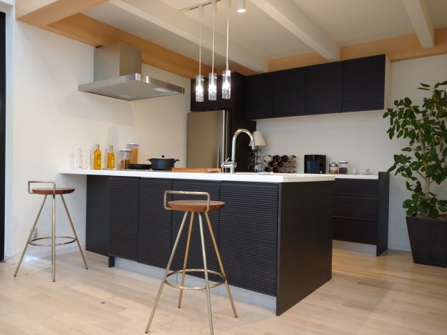 キッチンを壁に接さずに配置するアイランドキッチンは、どの方向からもアクセスできるため、複数人での作業や配膳が楽になります。